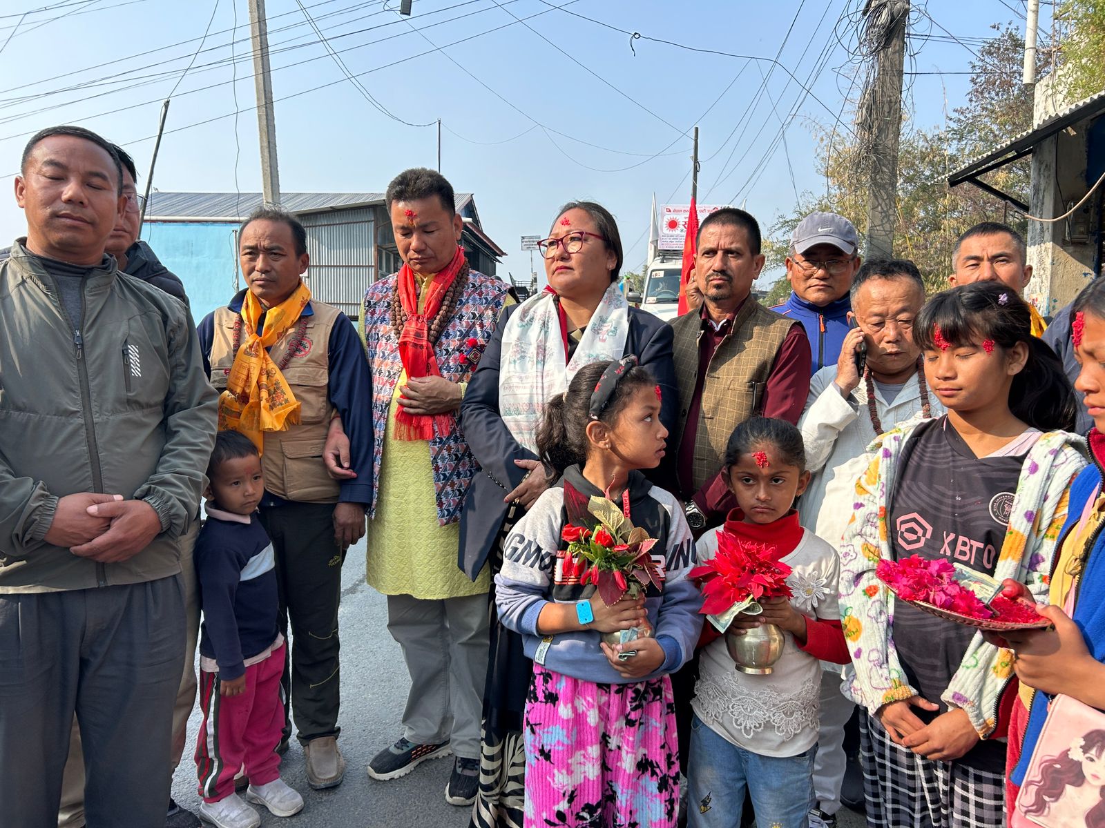 धरान : पाँचकन्याको हातबाट टीका ग्रहण गर्दै एमाले उम्मेदवार टीकाराम लिम्बू र मौसम राईले धरान–४ नम्बर वडामा घरदैलो कार्यक्रम शुभारम्भ गरेका छन्। उम्मेदवारहरुलाई धरान–४ का वडा अध्यक्ष धनबहादुर राईले शुभकामना दिँदै सूर्य चिन्हमा मतदान गर्न वडावासीलाई आह्वान गरेका छन्। शनिबार धरान–४ को खैरेनीटार काठेपुलबाट घरदैलो कार्यक्रमको शुभारम्भ गरिएको हो। वडा